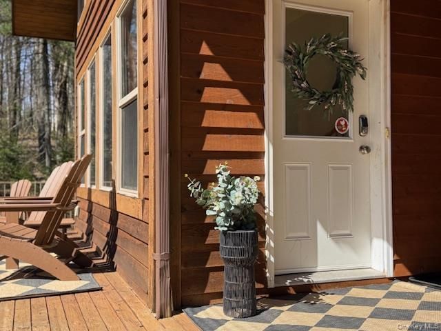 Have you been thinking I need a place away from the noisy city? This is it...As the front door opens you see the soaring ceilings, hardwood flooring and chic fireplace with architectural.. amazing windows which drench the room in light.....the kitchen is designed to encourage fun with cooking prep and a table set within a magical bay window area.. looking out to the wooded side yard. There is a front porch deck for lingering and slowing your breath down. The first floor bedroom has an upgraded closet organizer and shelving. Plus a full bathroom and laundry roomoff of the hallway. Upstairs there are two bedrooms with a shared full bathroom. One of the bedrooms has a walk out to its own private deck for early private mornings and a book. There is a full unfinished basement for storage or potential to finish. The wooded lot adjacent is included. Around the corner is access to private Black Lake and gorgeous views and the sound of water. Jump in your kayak or canoe and paddle away from the world. All closets have been professionally set up with organization systems. There is an electric plug outside for your electric vehicle charging. Private long driveway into your new home..and welcome to upstate New York in the Catskills.